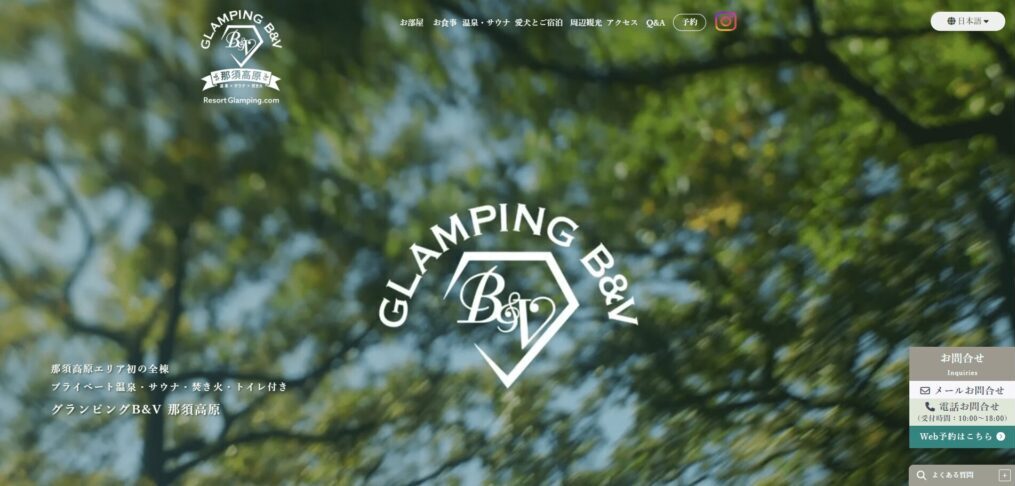 グランピングB&V 那須高原は、那須高原エリアで初めて全棟にプライベート温泉・サウナ・焚き火・トイレを備えたプレミアムグランピング施設です。広大な敷地に多様なテントがゆったり配置され、天然温泉やサウナ、アウトドア体験、インクルーシブのドリンクサービスなど充実した滞在が楽しめます。自然に囲まれた非日常空間で、心身ともにリラックスできる特別な時間を過ごせるでしょう。
